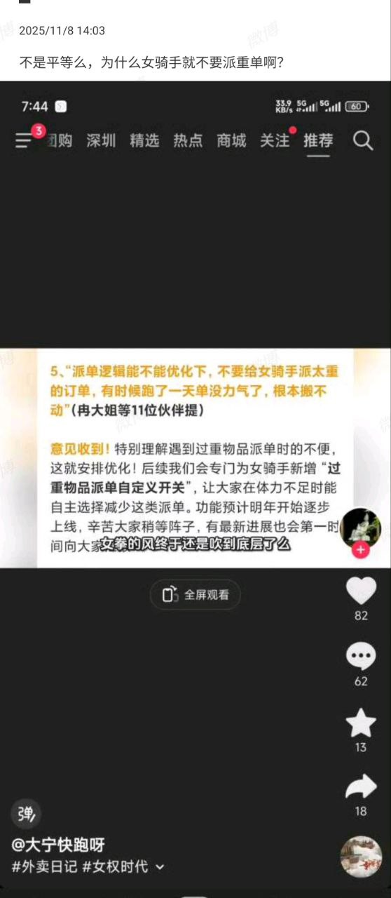 笑死,小仙女前脚抱怨外卖平台给女骑手的单子太重,后脚平台就出台帮女骑手减少过重派单的功能